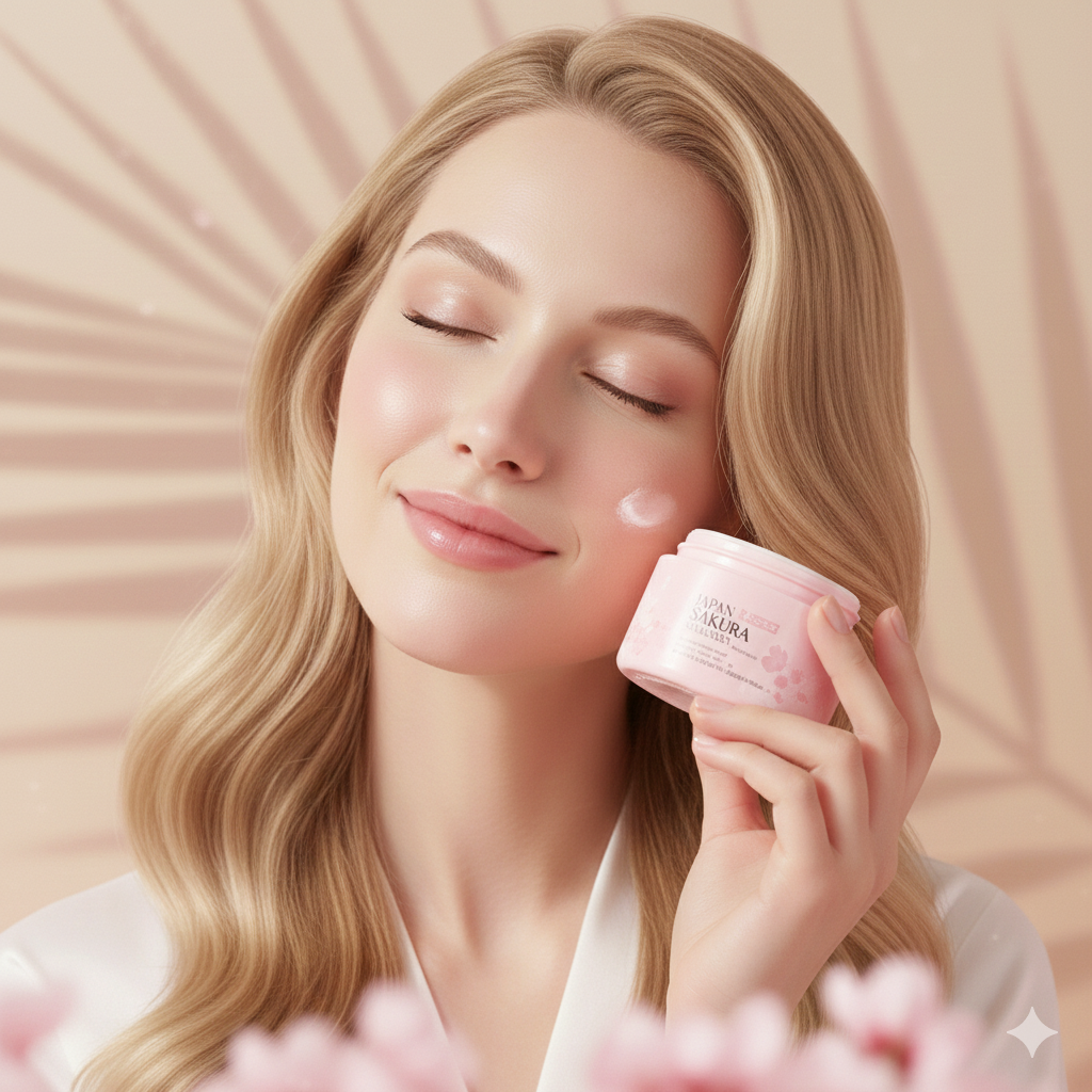 Japanese Sakura Flower Extract (Prunus Lannesiana): rich in Vitamins A, B, and E to nourish the skin and support cell renewal