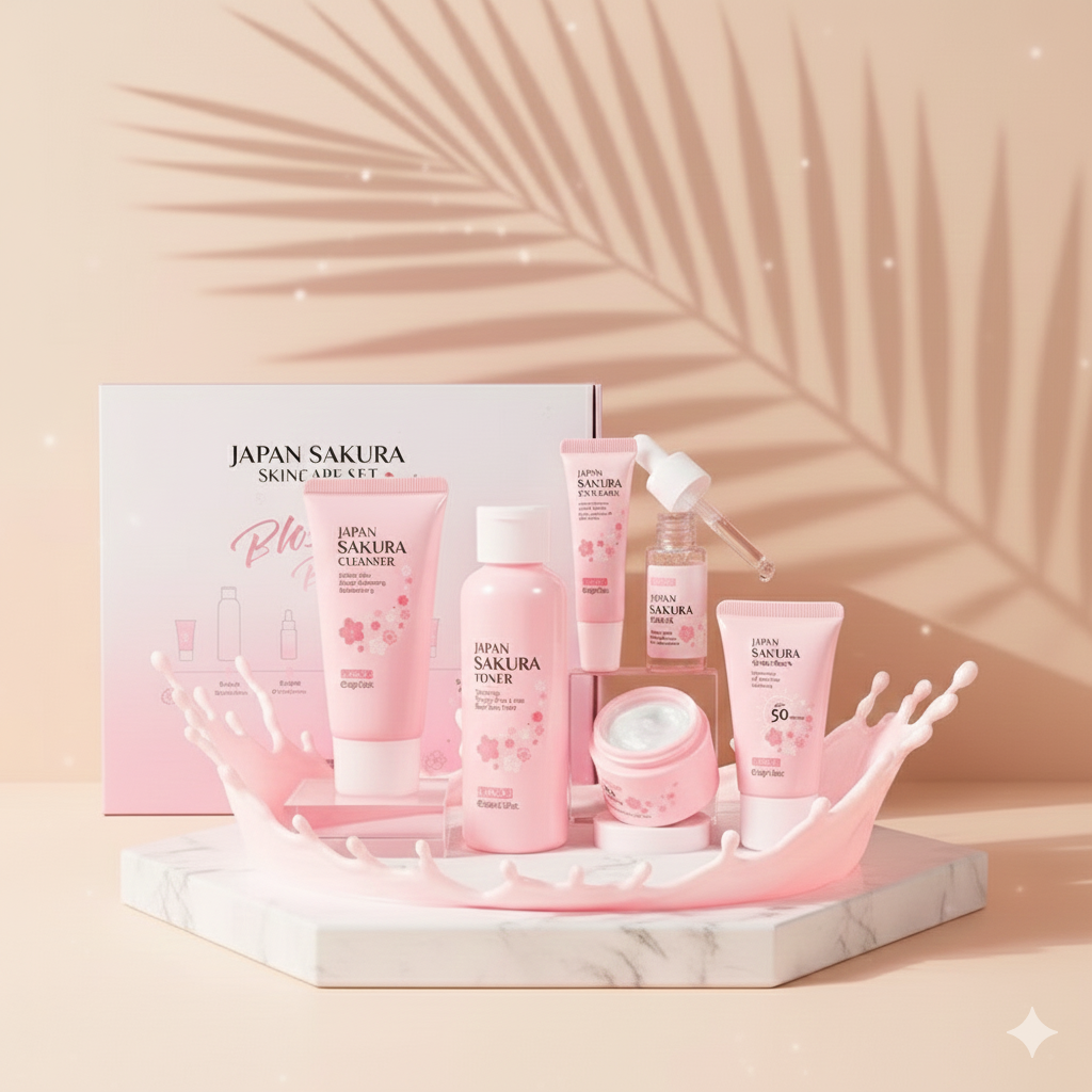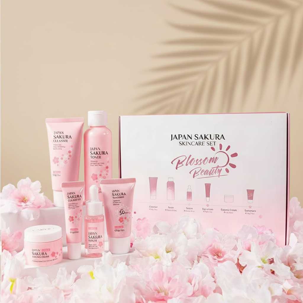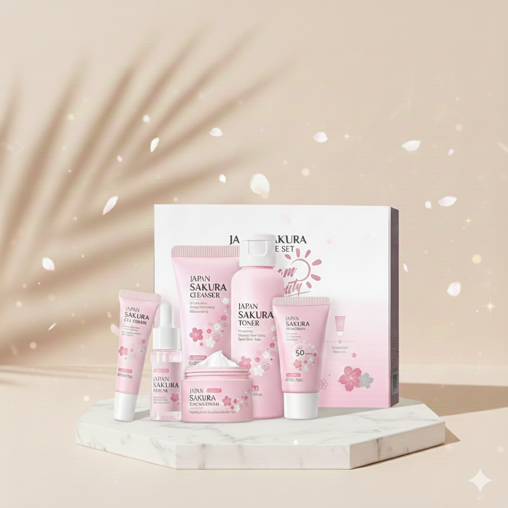 Inspired by the delicate beauty of Japanese Sakura blossoms, the LAIKOU Japan Sakura Skincare Set delivers a complete facial care ritual designed to hydrate, balance, and enhance skin radiance.