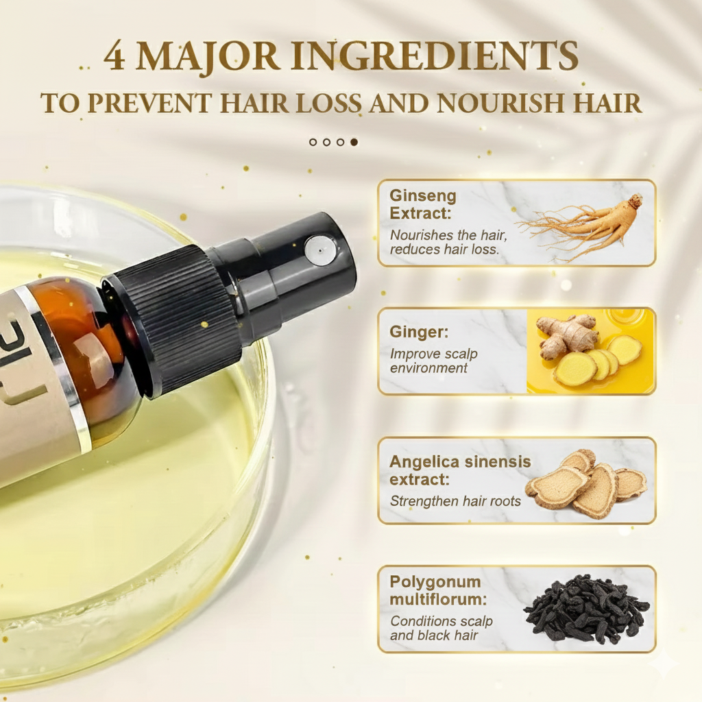 Experimente o poder da nutrição ativa com o Spray de Óleo Capilar para Crescimento PURC , uma fórmula concentrada desenvolvida para revitalizar o couro cabeludo, reativar folículos dormentes e estimular um crescimento capilar mais rápido, forte e saudável. Enriquecido com extratos de gengibre e ginseng , este tratamento oferece a força botânica consagrada pelo tempo para fortalecer as raízes e impulsionar o ciclo natural de crescimento dos fios.