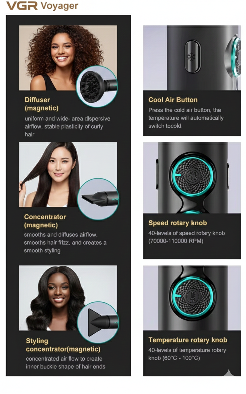 VGR V-401 — precision control, powerful airflow, and refined styling excellence.